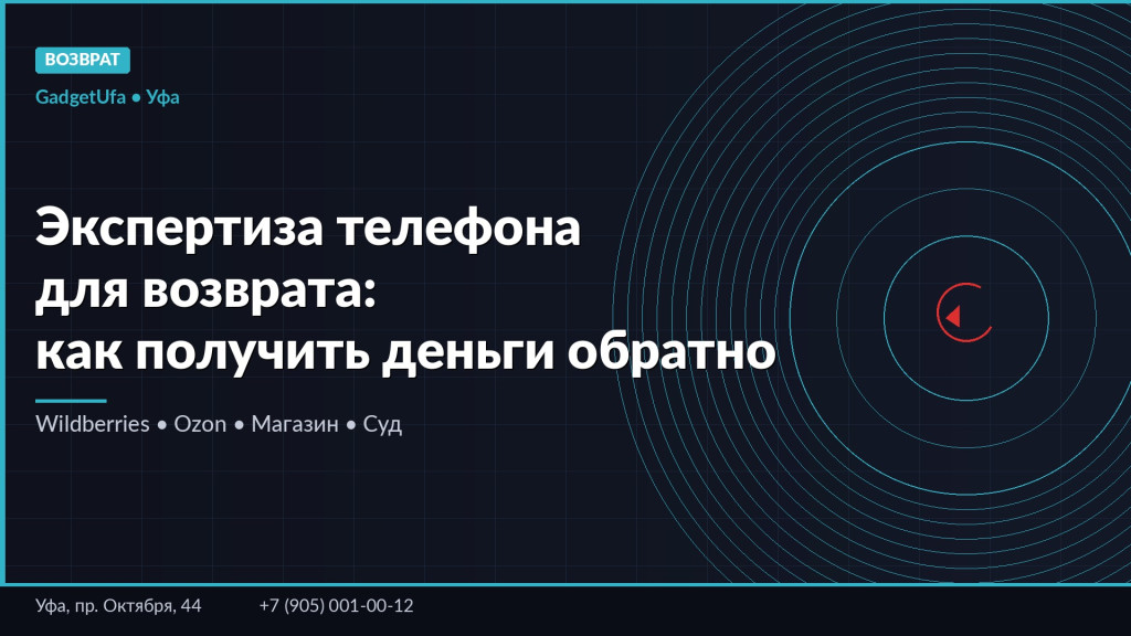 Wildberries и Ozon при возврате техники дороже 10 000 руб. вправе потребовать технического подтверждения дефекта. GadgetUfa выдаёт акт осмотра в день обращения — этого документа достаточно для инициирования возврата через личный кабинет маркетплейса.
